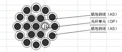 型號(hào):OPGW-48B1-150 [99.8;196.0],表示為48芯OPGW光纜,150平方的截面積,抗拉力RTS為99.8KN,極限短路電流容量為196.0kA2s,具體結(jié)構(gòu)圖如下: